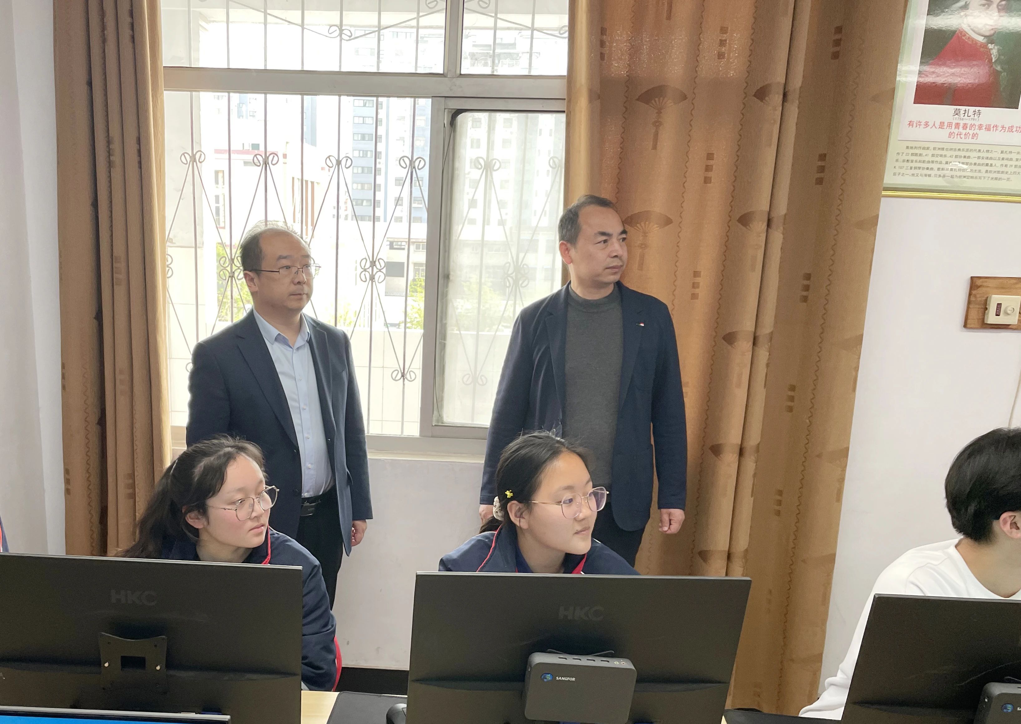 为提高学生的信息素养,培养学生的创新能力和实践能力,我校组建人工智能Python编程社团,3月29日,社团在高中部综合楼四楼中机房和东机房同时开课,校长刘庆华观看了开班第一课
