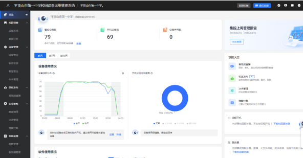 我校为88个教室二次更新了最新款希沃智慧黑板并布置了集控管理系统,实现了软件统一安装、远程巡课、系统安全升级维护等功能。
