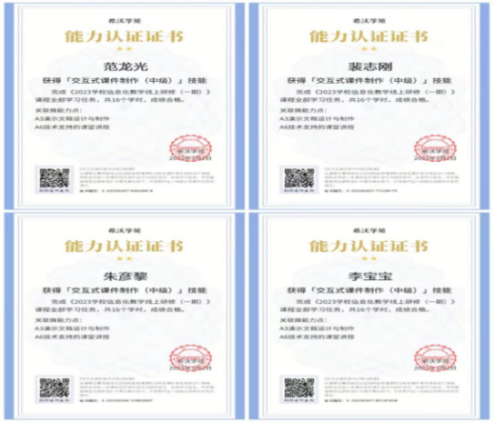 培训期间,学校每天早上发布学习链接,并耐心提醒学员们按时完成培训任务。经过12天的扎实培训,学校41名参加培训的教师收获满满,不仅提升了信息技术应用能力,还获得了能力认证证书和“杏坛教师”光荣称号。