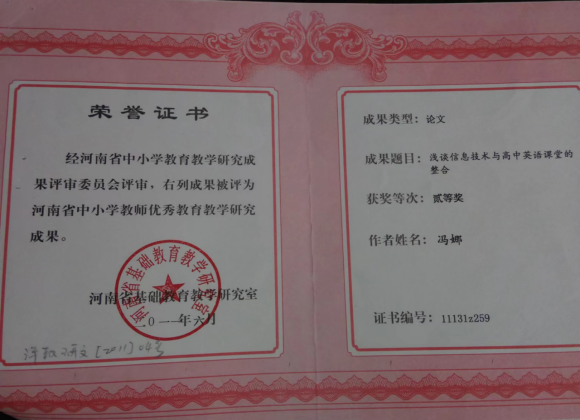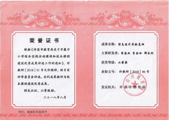 襄城县实验高中 优秀课题结题证书及成果