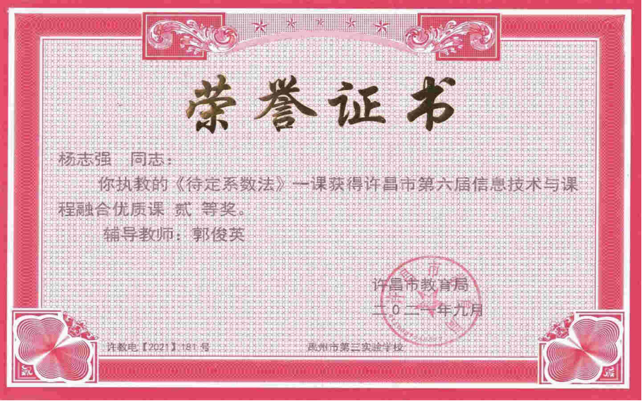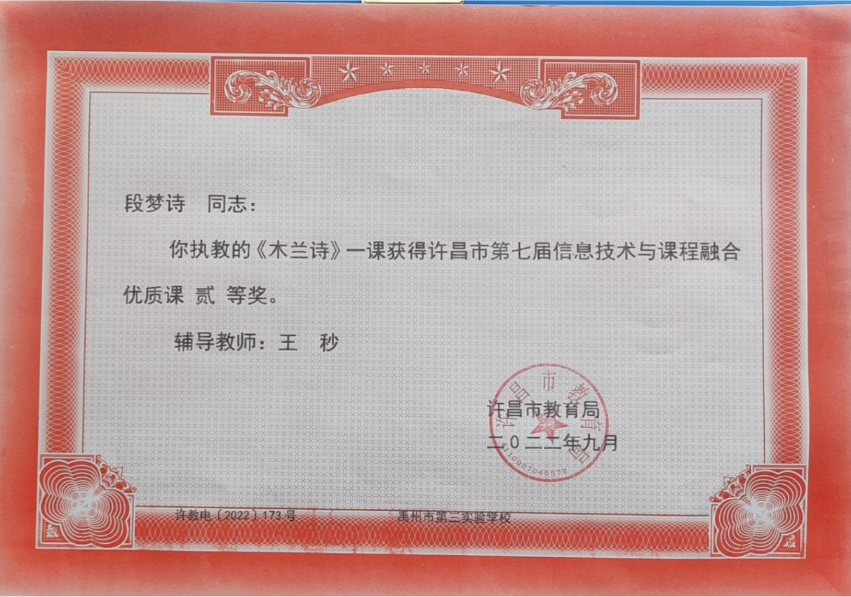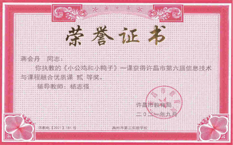信息技术融合课获奖证书