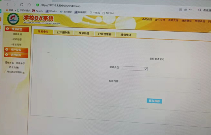 校园OA系统是我校的综合管理平台,具备网上办公功能,以简单、实用为原则,为学校各项工作提供一个网络平台,具备公告通知、校内邮件、成绩管理、部门文件、网上报修、网上备课、学生德育管理等功能,提升了学校信息化管理水平。