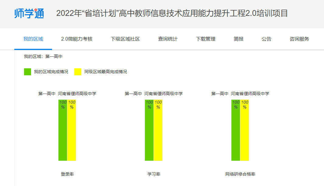 2022-2023年我校积极组织全体教师参加河南省信息技术能力提升2.0工程项目,培训合格率为100%。