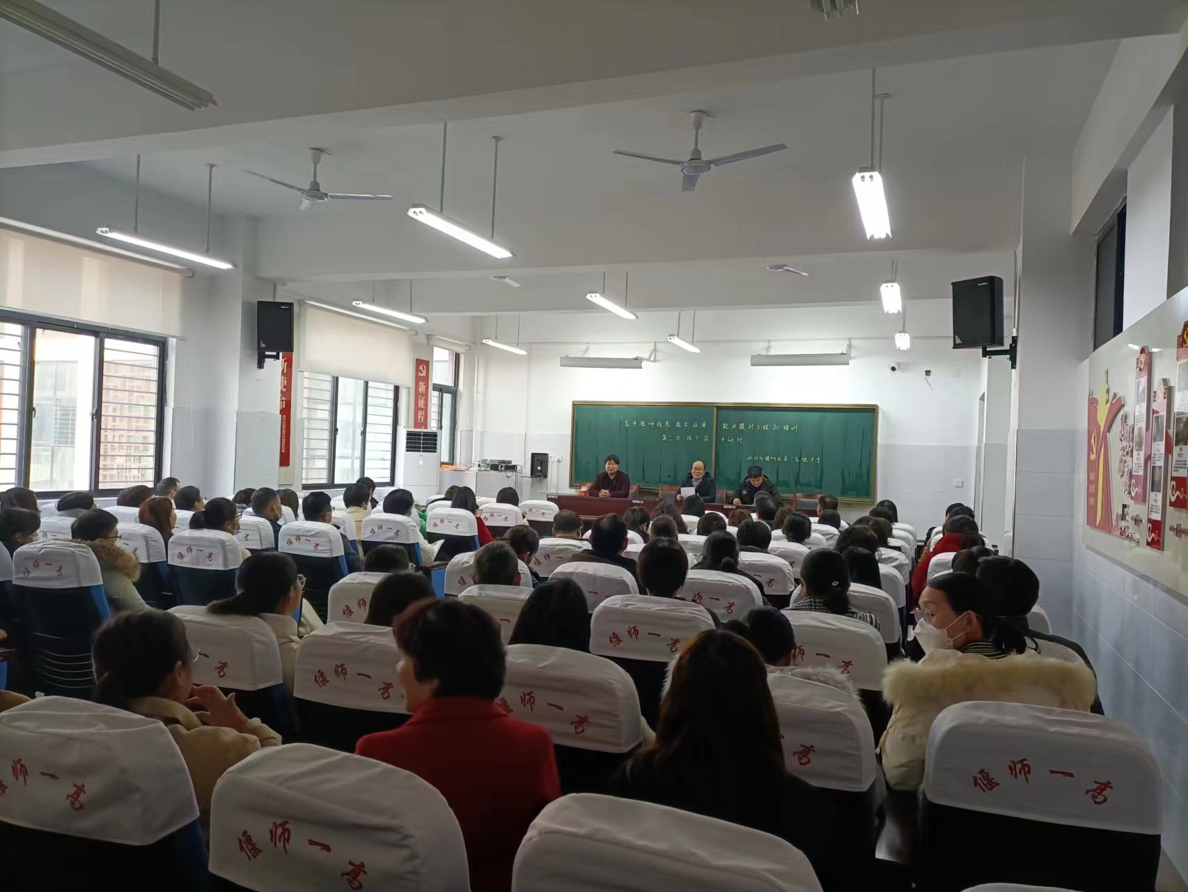学校有计划地开展信息技术与学科融合教学研究活动,开展了鸿合白板、钉钉办公等培训。
