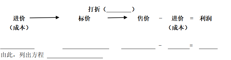 知识:打折销售中,利润、成本、售价之间的数量关系,利用等量关系列方程。