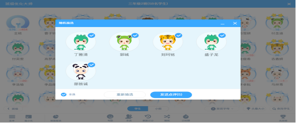 在班级优化大师中,老师可以直接用软件随机抽人答题,让软件来选人,这样学生对回答问题充满了一种不可知的期待性。
