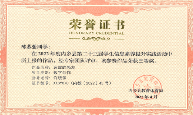 我校注重在平时教学中提升学生的信息素养,组织学生参加信息素养实践活动,并多次荣获荣誉。