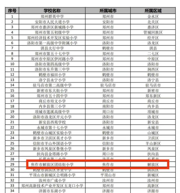 2023年10月9日,在河南省教育厅认定、公布的“2023年中小学数字校园标杆校”名单中,焦作市解放区团结街小学被评为“河南省中小学数字校园标杆校”。