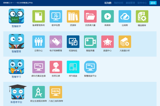 为优化教育管理,学校在高校科研机构的帮助下,搭建了教学评一体化平台,实现学校通知公告、校园新闻、公车管理、报修等在线管理。借助一体化平台,学校给班级、功能教室、教师、学生等开通网络学习空间,在班级、办公室、功能教室等场所部署电子班牌,展示各空间文化动态,初步形成“人网融合”的网络学习空间,被教育部评为2021年度全国网络学习空间应用普及活动优秀学校,还获评河南省首批数字校园标杆校、河南省第三批义务教育标准化管理特色校(大数据精准教学特色)。
