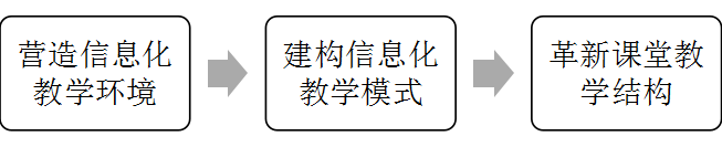 在信息技术与教学深度融合的时代背景下,我校成立了以校长为CIO的信息化领导小组,设立信息中心中层处室,专职推进信息技术与教学深度融合创新发展工作。经深入研究信息技术与课程融合的内涵、特征、路径和目标后,我校制定出了营造信息化教学环境、建构信息化教学模式和革新课堂教学结构“三步走”的实施路径(如图1)