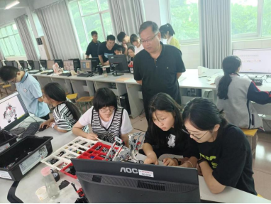 2022年8月23日上午,雪枫中学微机室,雪枫中学首届“智能机器人”夏令营正式开营。