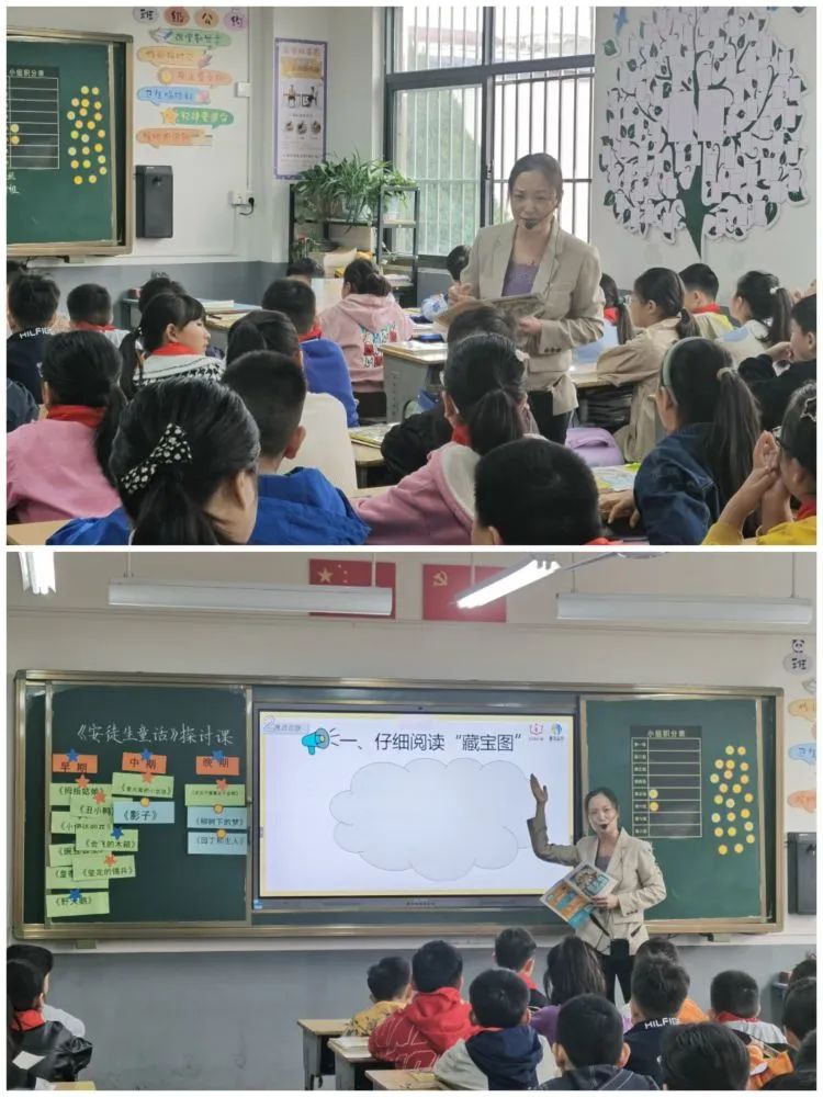 李颖老师执教《安徒生童话》探讨课,以安徒生不同时期的作品特点为切入点,让学生对整本书内容及表达的情感有初步的感悟,接着带领学生在故事中寻找“宝藏”,从“仔细阅读寻宝图——寻找关键人物——深度挖掘”,层层递进,给学生以阅读方法的指引。李老师语言亲切,课堂氛围轻松,通过小组合作、布置阅读任务等方式搭建思维路径,点燃了学生阅读的激情,更让学生领略到阅读的意义与美好。