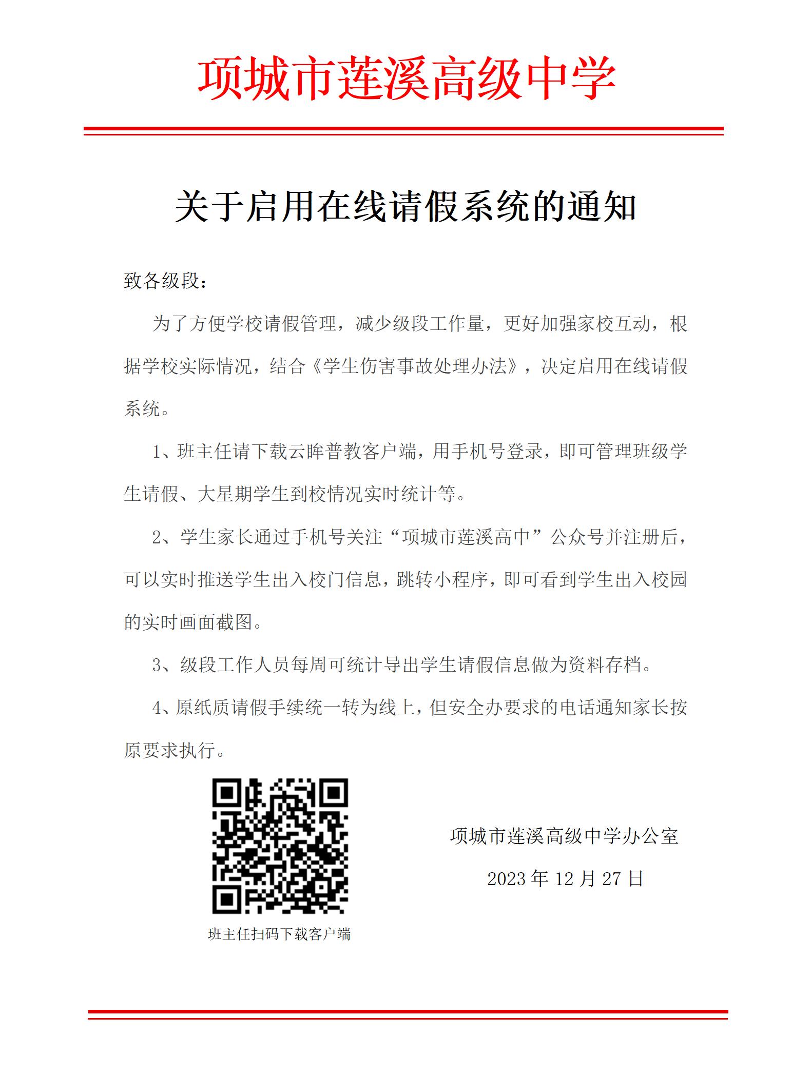 项城市莲溪高级中学作为一所全封闭的寄宿制学校,不但致力于为学生提供如居家般安全、舒适、健康的环境,更注重学生生活习惯的全面培养及心理的健康成长,为了确保学生安全,我们创新性的采用数字化学生信息管理系统,并将学生住宿、离校、请假三位一体进行数字化管理,极大方便了教师、家长和学校的安全管理工作。