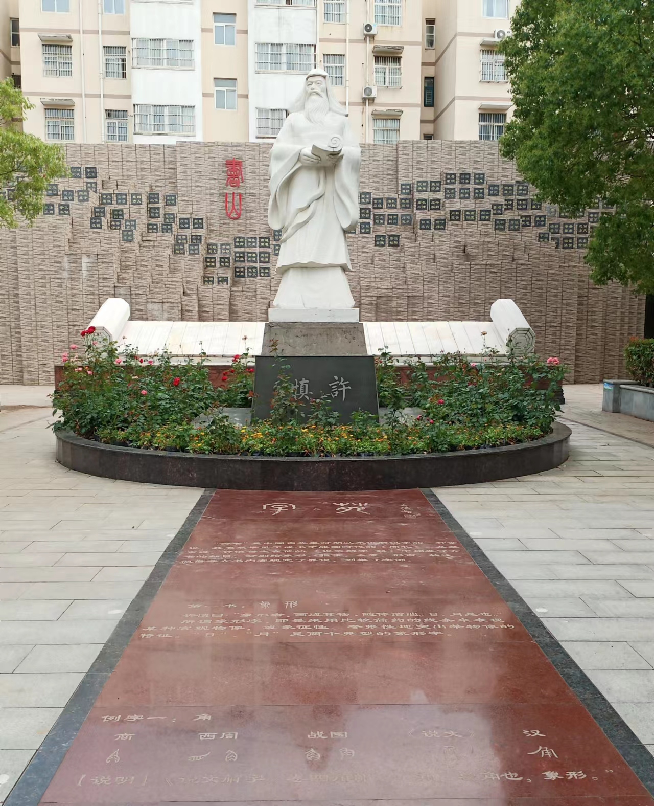 高约3米的汉白玉许慎雕塑及《说文解字叙》书简石刻。