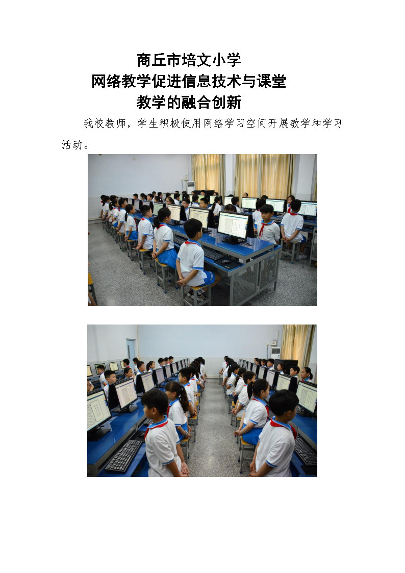 商丘市培文小学网络教学促进信息技术与课堂教学的融合创新