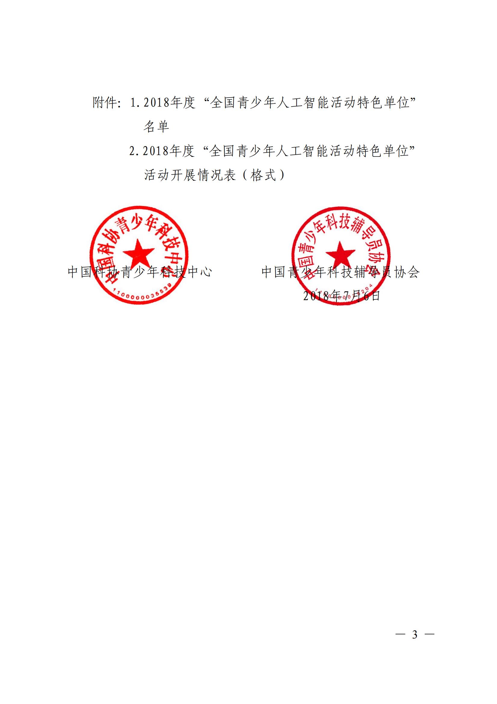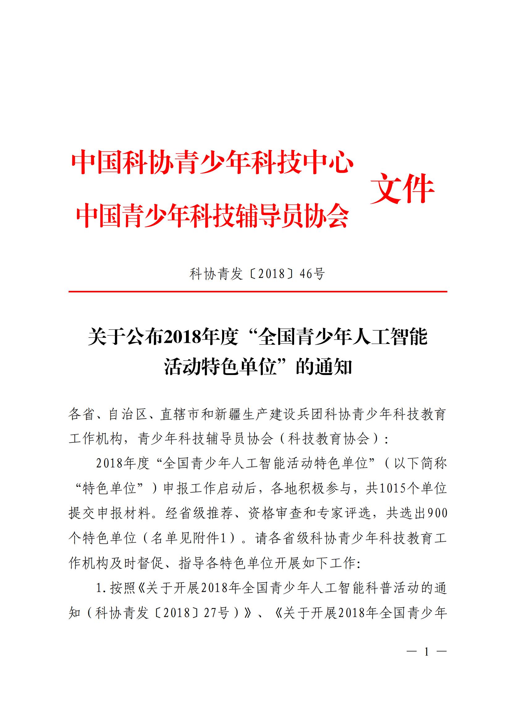 2018年7月获全国青少年人工智能活动特色单位称号