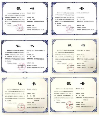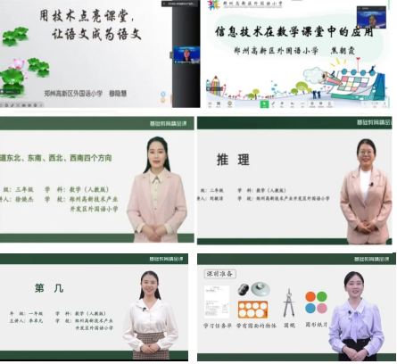 为贯彻全面落实立德树人根本任务,切实提高我校师生创新精神和信息素养能力,以“以赛促学、以学促知、以知促用”为理念,我校组织师生积极参加各级各类活动。在持续探索与实践中,外国语小学师生获得喜人硕果。张赛赛老师整合现代信息化优质资源“数字教材”,运用“单元疑彩课堂”有效形态,促进学生思维发展,所授课获得全国第三届基础教育课程改革课例“教学创意奖”;吴晶晶、翁非、徐焕杰、刘敏洁等20余位教师在河南省信息技术融合课、河南省基础教育精品课例展示中荣获一、二等奖,李卓凡执教的课例《第几》经过区级、市级、省级层层遴选,最终成功入选部级精品课例。杨继玉、穆隐慧、付香荣、袁凯丽等20余位教师的课例荣获郑州市一、二等奖;穆隐慧、焦朝霞老师分别围绕《用技术点亮课堂 让语文成为语文》《信息技术在小学数学课堂的应用》为国培班骨干教师做专题培训,获得一致好评;刘娟、王鹏姣、金一帆、李培文等教师的20余项信息化教学与管理教科研课题研究获得市、区级结项。