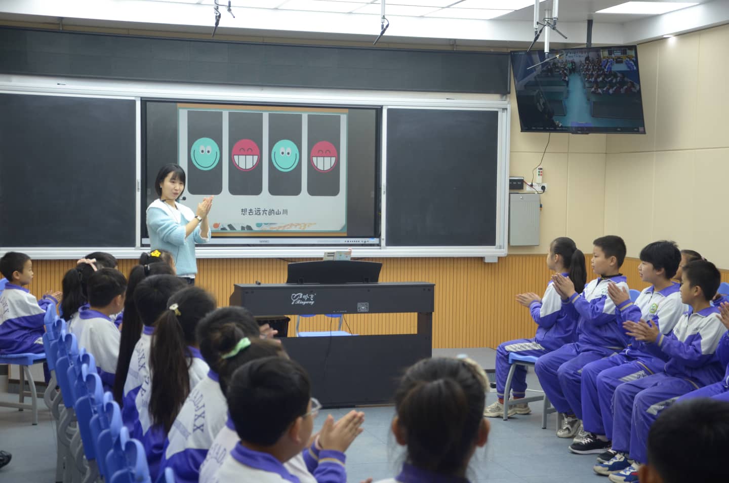 为陶家营的孩子带去了一节生动的音乐课,黄老师教态亲切,语言生动活泼,课堂气氛活跃,虽然隔着屏幕,但师生积极互动、课堂气氛活跃。而杨鹤鸣老师执教《可爱的汽车》美术课,引导学生观察汽车细节,最终设计出自己心中的汽车。期间还通过屏幕游戏互动环节,让两所学校的孩子们在娱乐中学到了知识。