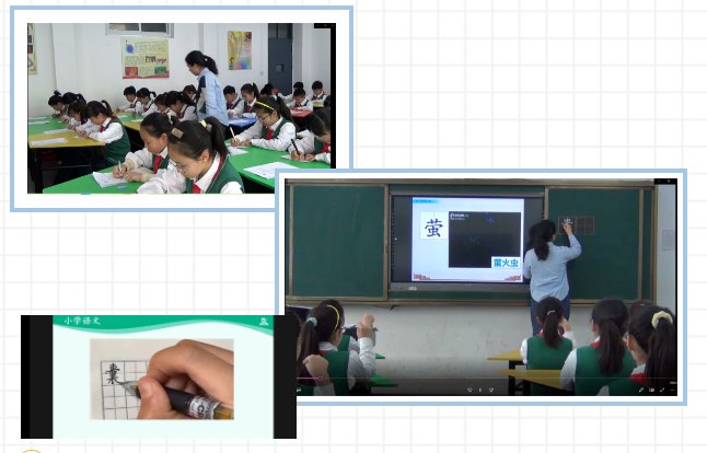 国家中小学智慧教育平台等各大平台的出现,正在改变或更新着课堂教学的教学方法和手段,课堂上如果能交互使用或借鉴某个环节,既能极大地提高课堂效率,又能提高学生的课堂学习兴趣。李老师在原有教学设计的基础上,通过国家中小学智慧教育平台及教育教学公众号的不断学习,寻找到了更适合本班学情的课堂教学方法,并通过多次磨课,最终呈现这节中年级文言文教学的课例。在这节课的写字教学环节,李老师按照以往的教学习惯,初步是这样设计的:先在黑板上范写,学生跟随教师书空,随后学生再临写两遍,教师在巡视的时候发现学生习字时的优点,指导学生习字时的缺点。而这样做的不足就是,教师在黑板上范写会造成部分同学不能看清这个字个别的笔画或笔顺,从而在随后的书写中影响他们对习字规律的掌握,同时也做不到对全班同学进行习字上的指导。