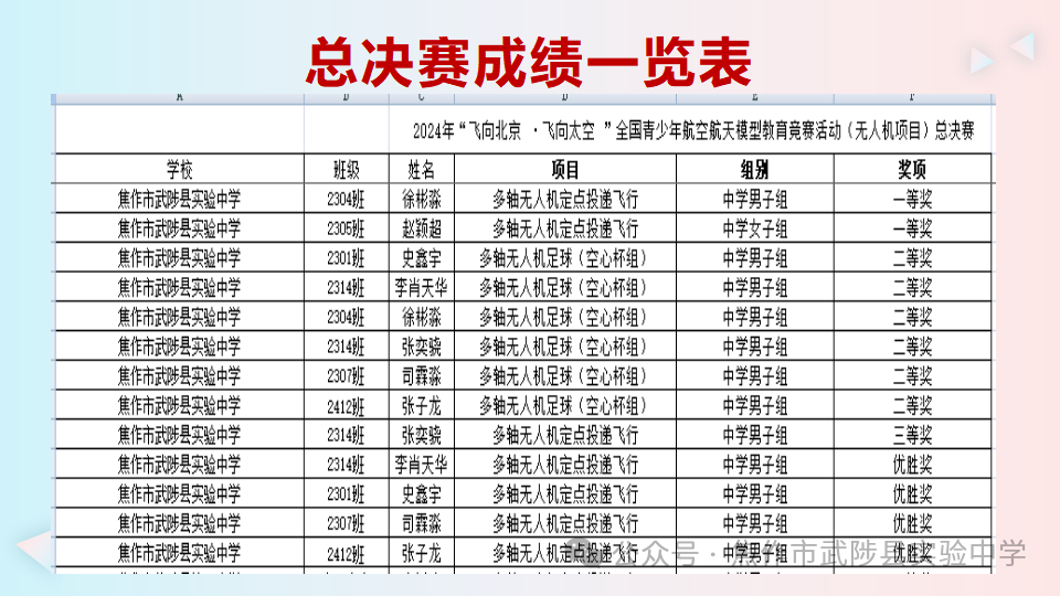 热烈祝贺武陟县实验中学无人机社团在2024年“飞向北京,飞向太空”全国青少年航空航天模型教育竞赛活动(无人机项目)无锡总决赛中荣获佳绩!