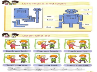 科普版小学英语三年级上册,Lesson8 What‘s this?第四课时。由let’s make and learn和listen and do两部分内容。本课时主要学习身体部位的单词body head arm leg hand foot(复习前面学过的表示身体部位的单词eye ear nose mouth等),让学生能够介绍自己的身体部位。