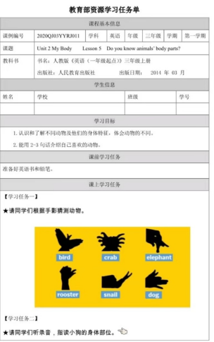 智慧教育平台上其中李梦瑶老师的一堂课上有一个游戏:根据手影猜动物。