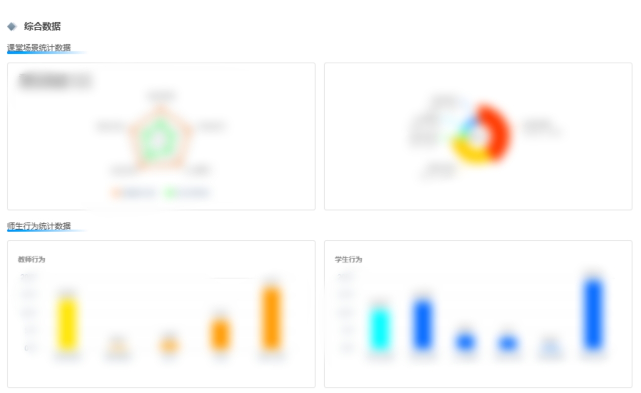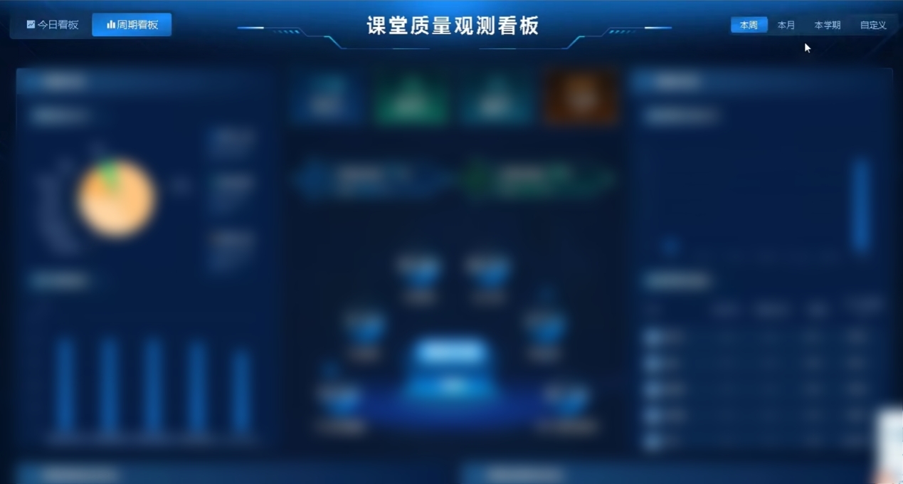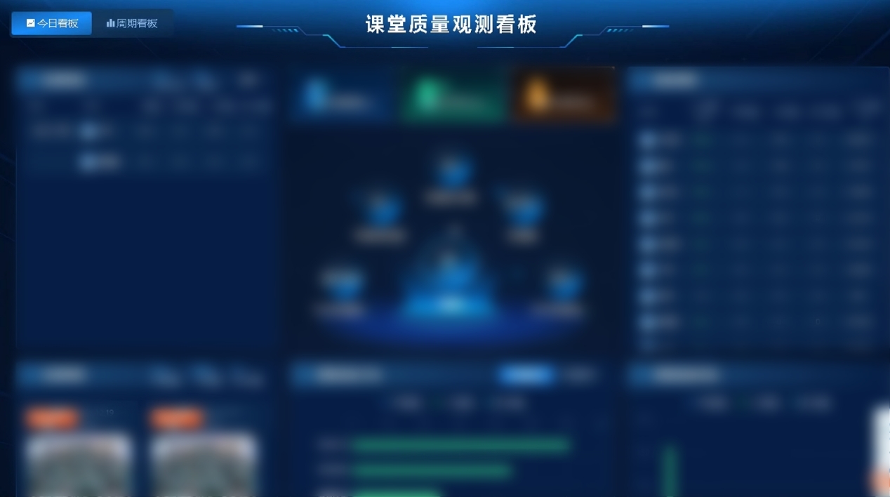 · 通过系统分析对当日课程数、学生数、教师数、预警课程数、预警数等数据汇总统计,绘制数据看板,可查看平均课堂问答次数、教师巡视时长、预警教师数、预警课程数等数据。