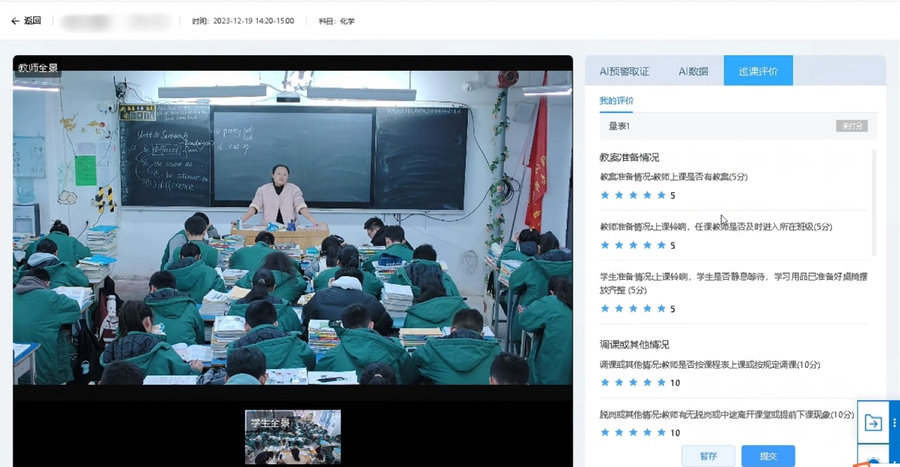 利用人工智能技术,对课堂教学过程进行实时监控和分析,为教师提供客观、全面的教学反馈。AI巡课系统主要满足教师、教学管理者等在线巡课需求,在满足多分屏音视频画面巡视的同时,扩展了系统功能应用,如预警分析、录像回放、量表评价等等,自动识别问题课堂,并可将预警数据自动发送教学主管领导的手机端,方便领导及时了解日常课堂教学开展情况。