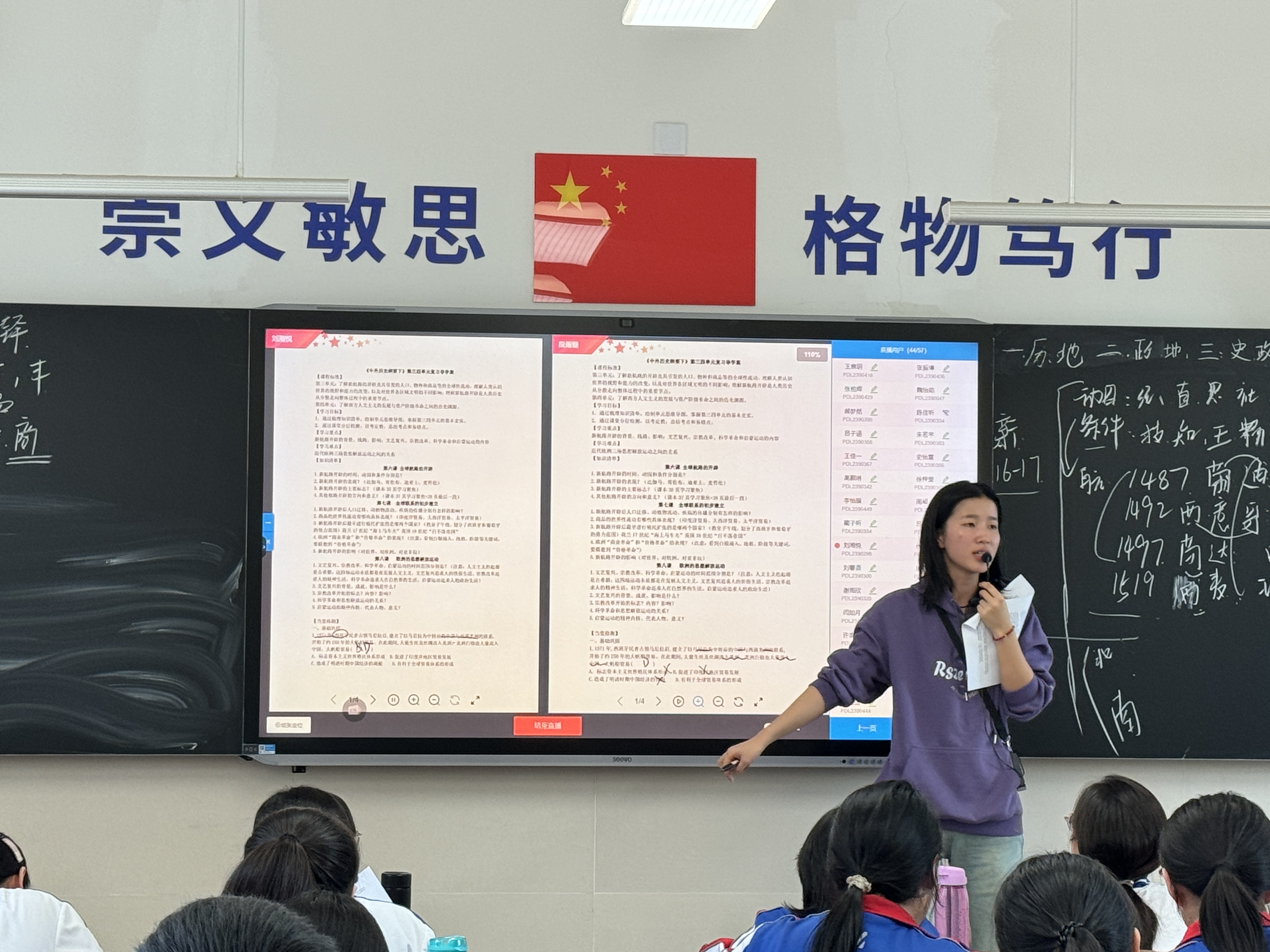 为进一步加强“三新”背景下青年教师专业发展和业务素养提升,助推学校教师队伍建设,助力青年教师发展,郑州市第一〇三高级中学持续组织学校全体青年教师开展汇报课展示交流活动。4月21日下午第一、二节,历史组青年教师任睿佳、宋心怡分别就《中外历史纲要下》进行新授课和复习课展示,并特邀郑州31高级中学教师仝保勇前来指导交流,共同探索教育教学与信息技术融合课堂新模式。