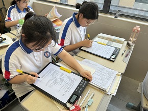 本次汇报课展示交流活动中,任睿佳讲授的是《中外历史纲要下》的第14课《第一次世界大战与战后国际秩序》,本课包括一战的背景、过程及战后国际秩序三部分内容。授课过程中,任睿佳高效运用“写字板”这一模式,充分调动学生积极性,为历史课堂增质提效。在基础知识梳理环节,通过设置知识填空,有针对性的考察学生对一战过程的掌握程度,并根据学生手写板作答情况,对易错易混淆点进行重点讲授。在合作探究环节,任睿佳老师通过导学案展示一战的有关史料,引导学生进行组内讨论,并结合手写板学生记录情况,展示优秀学生观点和思路,呈现学生的作答规范,又促进了生生之间的思维碰撞。