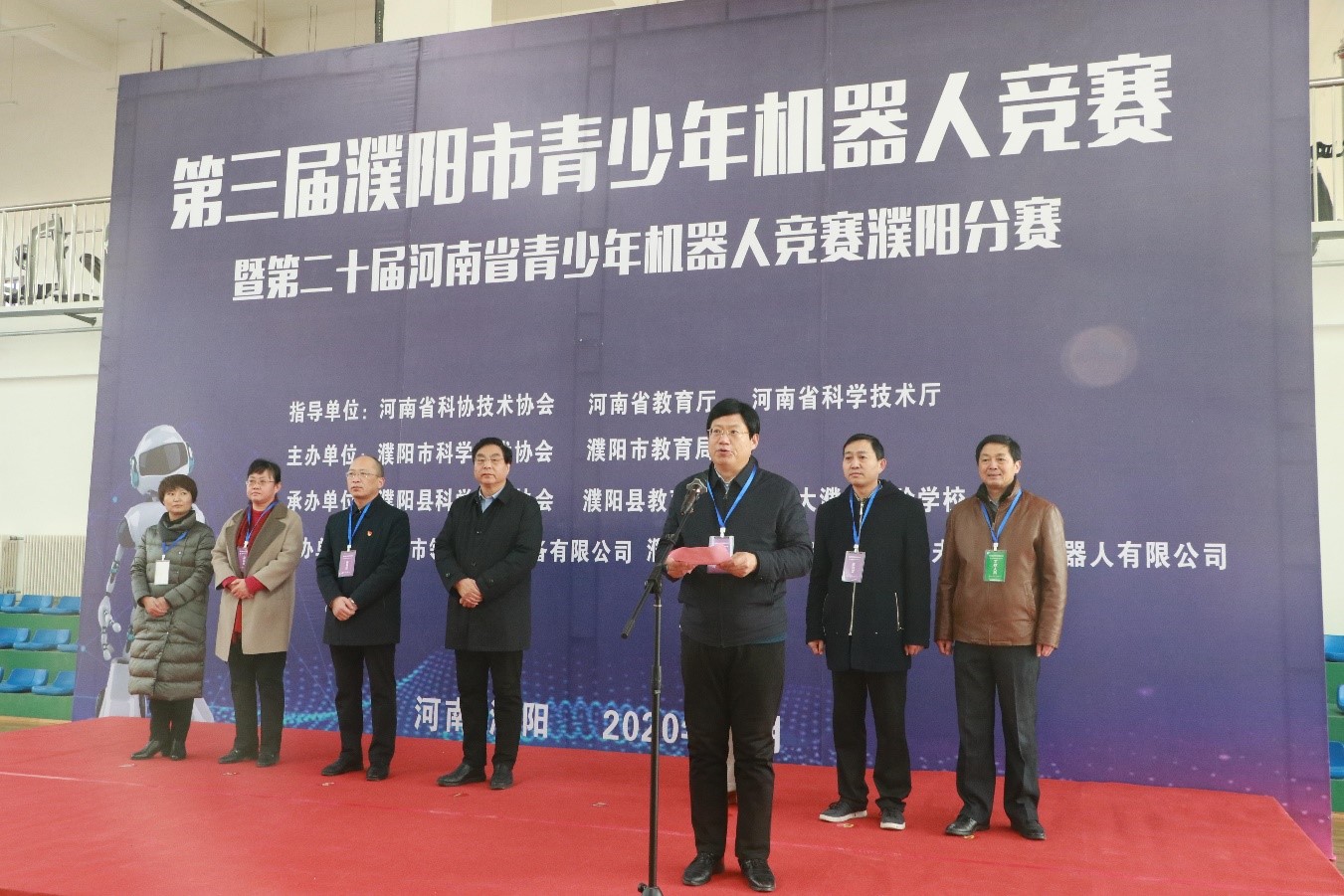 2020年12月12日上午,第三届濮阳市青少年机器人竞赛在北京师范大学濮阳实验学校成功举办。本次大赛由市科协和市教育局主办,县科协、县教育局和北师大濮阳实验学校承办,来自全市74所学校的学生和指导老师参加了本届竞赛活动。市政府副市长孙永振、市科协主席张宏、市教育局党组副书记李殿峰、市科协副主席侯志英、县委常委、副县长袁素平、县科协主席张常伟、县教育局副局长常春英、北师大濮阳实验学校校长汪昌池校长以及南阳市科协、新乡市科协部分同志出席了现场活动。