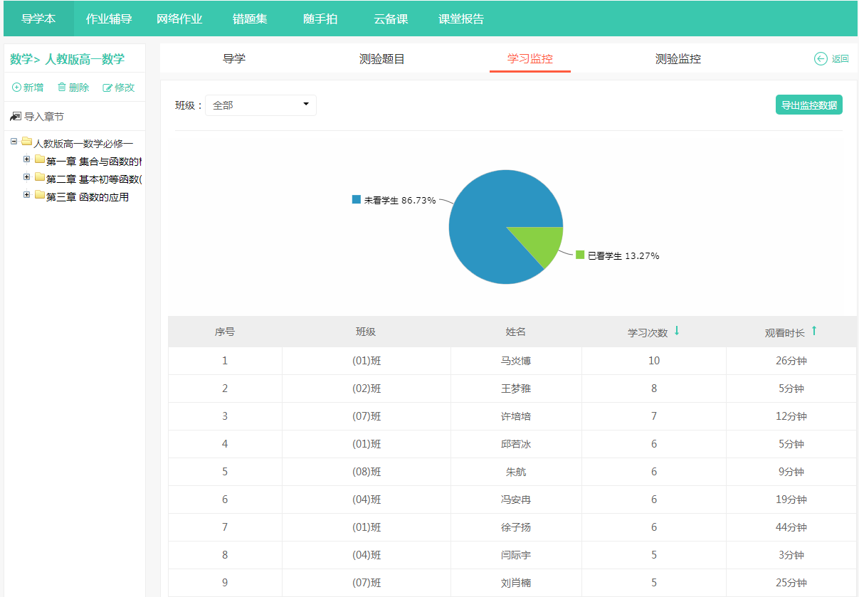教师推送导学本资源,学生自主预习,并通过云平台进行作业学习反馈,教师根据反馈情况二次备课。