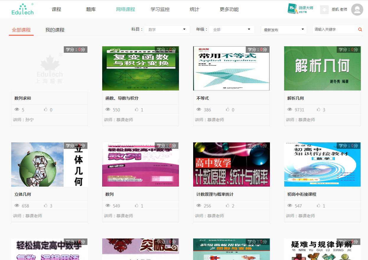 我校智慧教学云平台,依托上海易教信息科技公司,与华东师范大学信息系及北京四中网校合作,系统包含课堂教学系统、电子备课系统、家校互动系统、作业辅导系统、网络互动、教研协同系统、自动出题系统、考试测评系统、教学及学习数据统计分析系统、教学及学习评价系统等。围绕教师、学生、家长和学校等四个服务对象,动态整合优质数字资源,提供网络空间、网络资源等应用共享服务,该系统构建了开放的教育教学环境,实现了教学、管理智能化,全面支持移动学习。