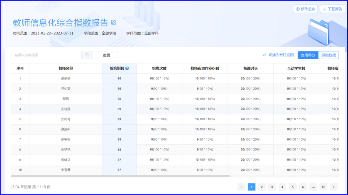 心动教学模式虽已大范围实践,但老师们教学理念和能力还需进一步提升,在课前、课后的运用较少,影响教学全环节应用数据采集,在一定程度上影响教师信息化综合指数的效度。