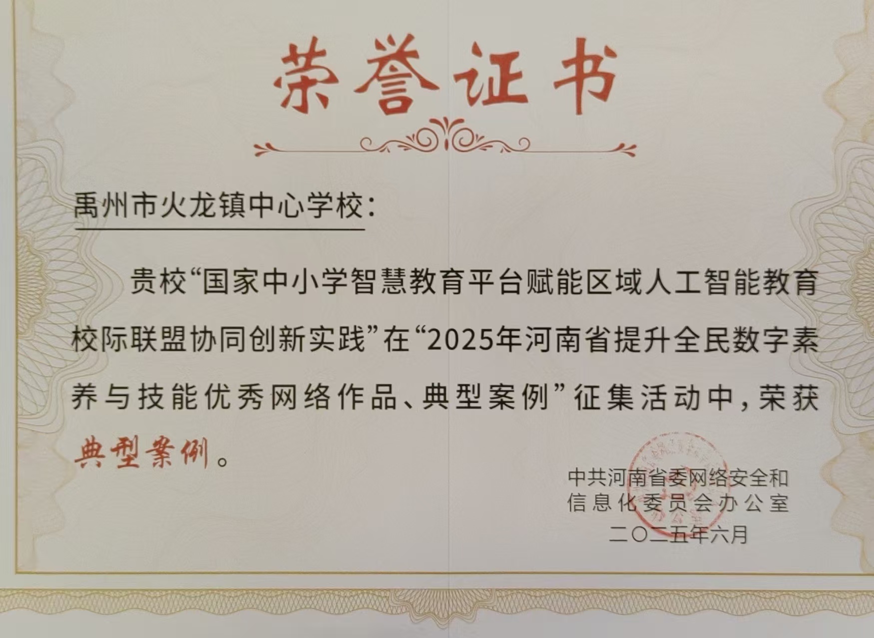 2025年我校获河南省网信办全民数字素养提升典型案例