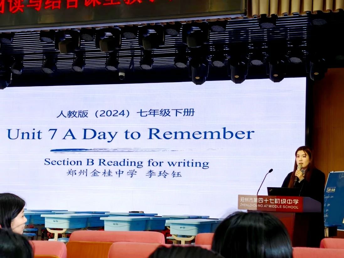 为深化课堂教学改革,促进教师专业成长,2025年3月10日,我校七年级英语教研组李玲钰老师应邀参加区级教学研讨会,就人教版七年级下册《Unit 7 A Day to Remember》以读促写课例进行说课展示。