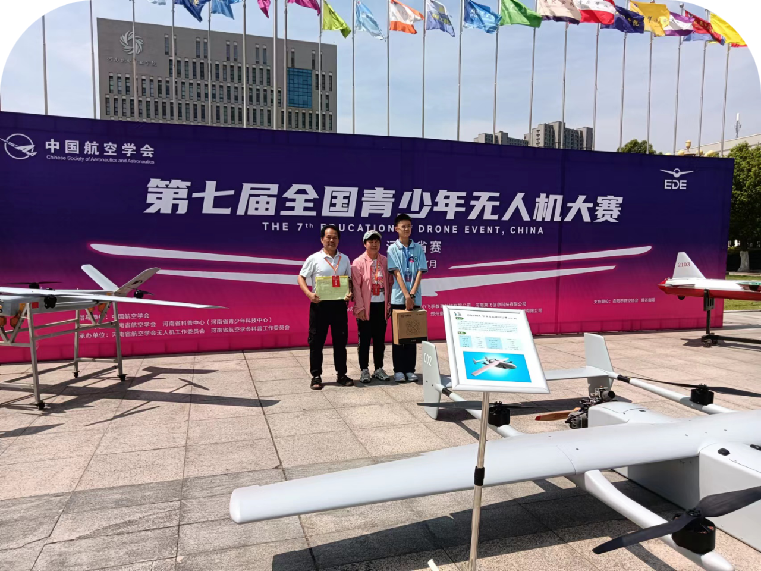 2023年10月20日,航模社团学员在科技节启动仪式上表演了一场精彩的飞行表演。四轴小飞手们穿圈表演,飞翔的和平鸽接力赛,社员们的精彩表演,给科技节开幕式嘉宾们留下深刻印象。在各级组织的航空航天模型竞赛中,学生发扬积极进取,奋力拼搏的精神,获得国家、省、市奖项十多人次。指导教师武合霞获得郑州市航空航天模型竞赛优秀辅导员,指导教师侯治军获得郑州市航空航天模型竞赛优秀辅导员。