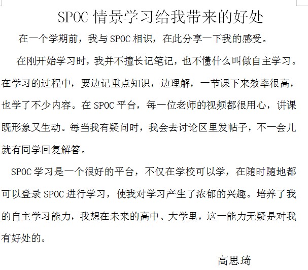 学生从被动的跟从式学习转变为主动的自我主导式学习,以自己的学会为进度,在教师的指导下以SPOC平台为载体进行个性化的自主学习,同时和小组成员进行同伴互助合作学习。在此过程中,不仅提升了学习兴趣,增强了独立思考、合作探究等学习能力,同时也收获了团队精神,获得了学业的大幅进步。