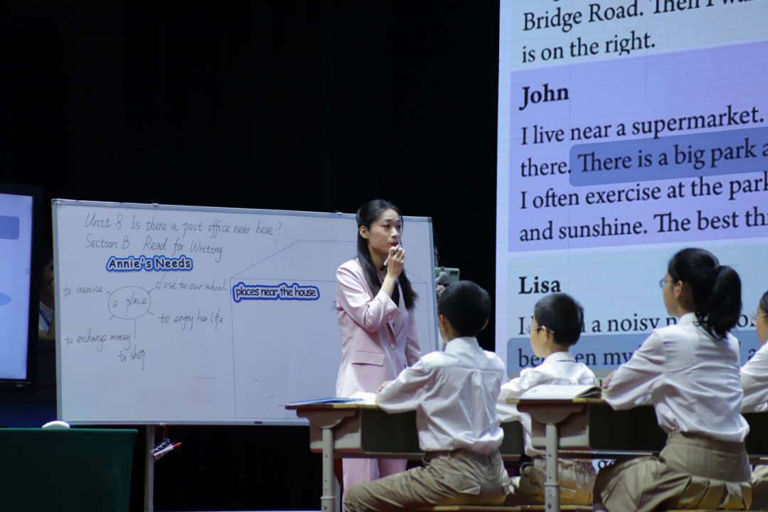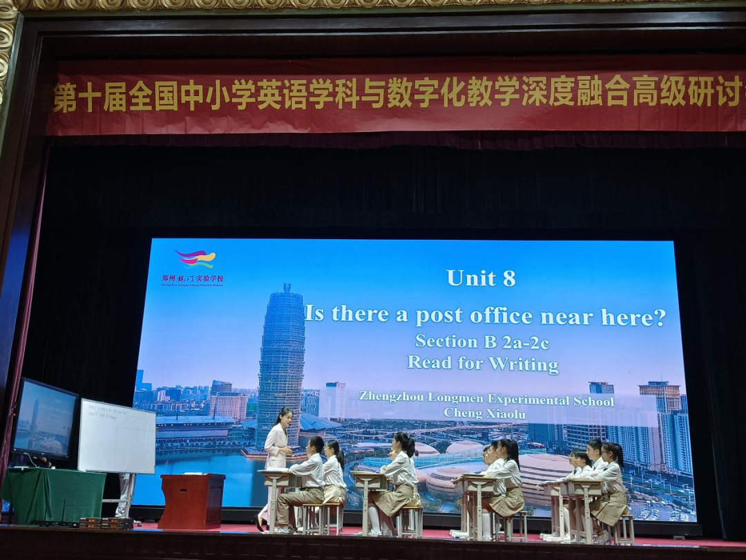 程晓璐老师展示的是人教版七年级下册Unit 8 Is there a post office near here? Section B 2a-2c 的读写课。程老师以新课程标准中加强信息技术与教学的深度融合的理念为依托,设计以“敦亲睦邻,热爱生活”为主题的单元整体教学设计,通过展开单元间有计划,有逻辑,有层次的教学完成育人计划。