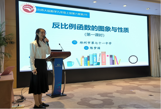 借助“人工智能技术”,教师可以将抽象的数学概念以图象、动画等形式直观展示,帮助学生更好地理解和掌握。在反比例函数的教学中,教师可以通过几何画板绘制函数图象,动态展示函数随自变量变化而变化的趋势,使学生直观感受到反比例函数的性质,如当x增大时,y值如何减小等,从而加深对反比例函数图象及其性质的理解。为了解决“反比例函数的图象到底是曲线还是折线”的认知冲突,我利用几何画板给学生直观演示,先描少量的点画折线,再描出大量的点,让学生观察,发现折线连接不对,从而理解反比例函数的图象是光滑的曲线,使抽象思维得到直观检验。