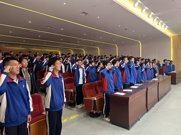 团课尾声,学校团委负责人刘畅带领全体团员重温入团誓词。团员们面向团旗,右手握拳,庄严宣誓。誓言铿锵有力,回荡在校园,彰显团员坚定信念与使命担当,他们将以更高标准要求自己,努力成为有理想、敢担当、能吃苦、肯奋斗的新时代好青年。