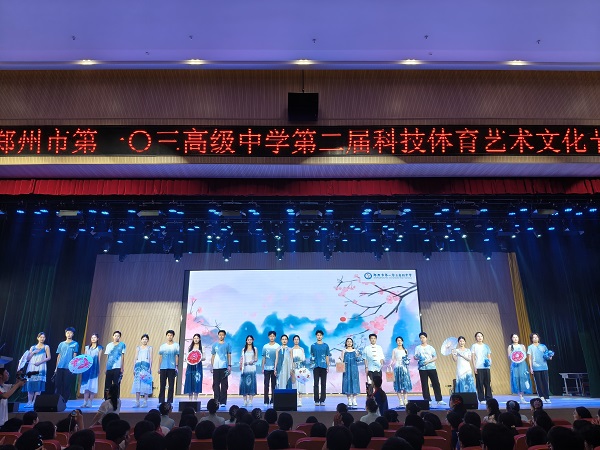 4月29日,郑州市第一〇三高级中学礼堂内灯光璀璨、掌声雷动,以“红心向党,阳光成长”为主题的第二届科技体育艺术文化节文艺汇演隆重举行。全校师生齐聚一堂,共同见证这场融合艺术、科技与体育精神的青春盛宴。