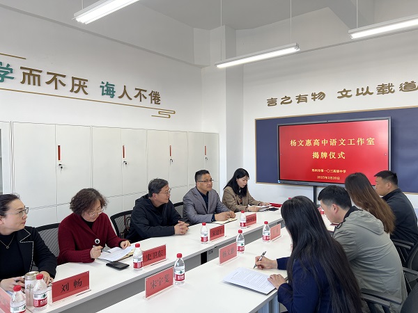 3月20日下午,杨文惠高中语文名师工作室在郑州市第一〇三高级中学尚同楼举行揭牌仪式,郑州103高党支部书记、校长孙国岩,副校级干部、教师发展中心负责人史卫东,特邀郑州市基础教育教学研究室教研员朱建军与工作室全体成员共聚一堂,共同见证这一属于郑州103高名师培养和教师发展的重要时刻。