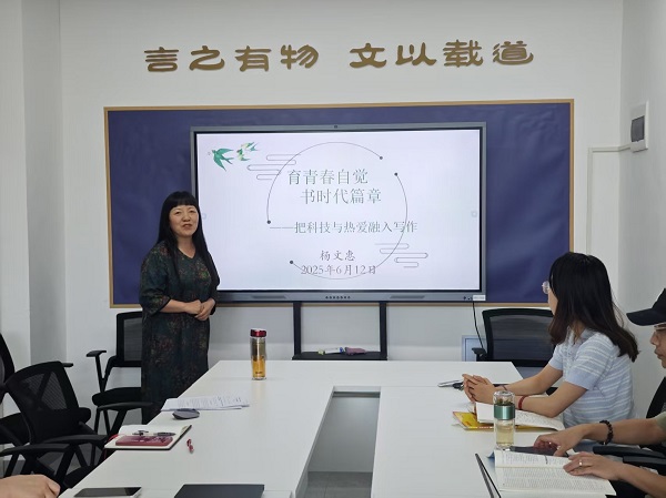 杨文惠以《育青春自觉书时代篇章——让科技与热爱激活写作基因》为题,聚焦理科生写作困境,提出“科学驱动、科技赋能、热爱融入”的三维教学策略。她指出当前高中生作文普遍存在的思想浅表、思维碎片化、表达模板化等问题,而破解之道在于打破学科壁垒,让科学理性与人文感性在写作中产生化学反应。在教学实践中,杨文惠让AI充当写作老师,为学生提供智能写作辅助:通过AI工具生成写作框架、优化语言表达,帮助学生梳理写作思路,还能针对作文内容给出修改建议,提升语言表达的准确性和流畅度。此外,她引导学生从个人兴趣出发融入写作,让AI助力个性化表达,使原本对写作犯难的理科生逐渐掌握写作技巧,在逻辑构思和内容创新上取得进步。杨文惠的讲座不仅为新高考背景下的写作教学提供了“破模板化、促个性化”的实操方案,更通过科技与热爱的双轮驱动,让写作成为理科生认知世界、表达自我的精神载体,为培育兼具科学理性与人文情怀的时代新人做出了有益尝试。