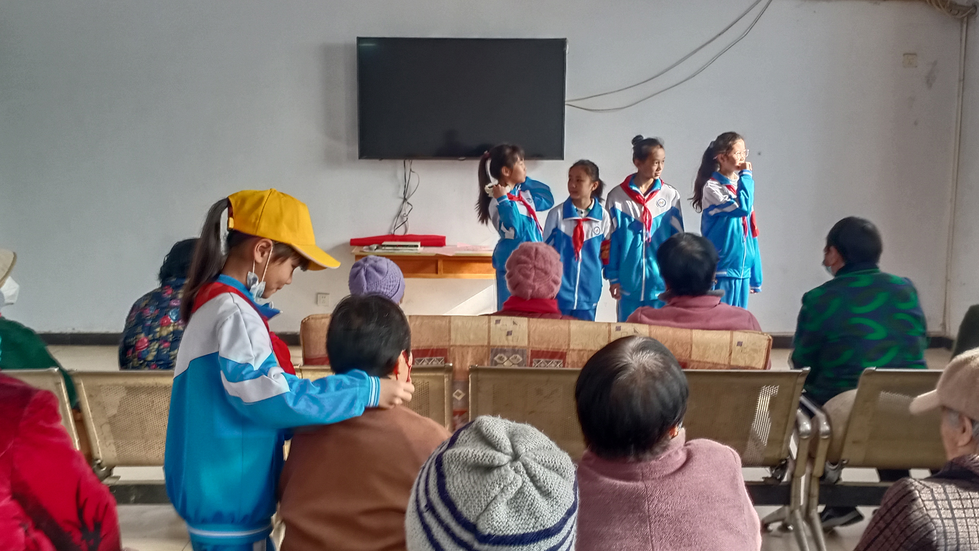 活动中,志愿者们排着整齐的队伍,唱着《学习雷锋好榜样》等歌曲,来到华龙区赵村文化站老年活动中心。少先队员们为老人们准备了精彩的节目,有的为老人唱歌,有的跟老人分享最近背诵的诗,有的为老人捏肩捶腿。