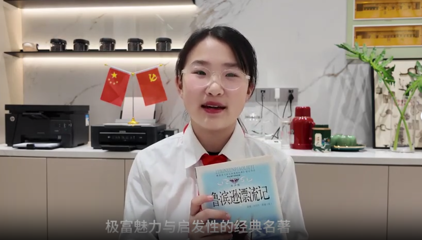 六年级的同学则带我们踏上《鲁滨逊漂流记》的荒岛求生之旅,体会绝境中的坚韧与创造力。镜头前,他们或激昂演绎"赤壁之战"的壮阔场景,或生动再现鲁滨逊搭建木筏的细节,在经典名著的深度解读中展现思辨的火花,完成与历史、与冒险的跨时空对话。