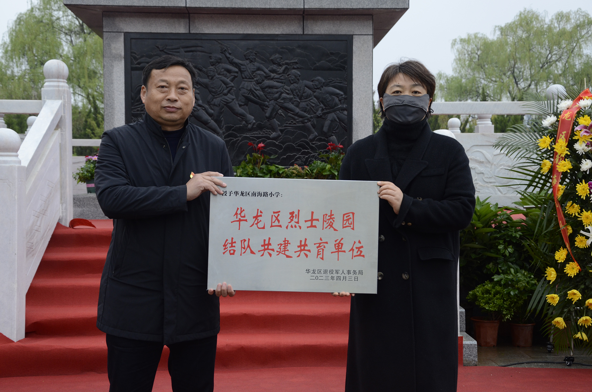 活动首先由华龙区退役军人事务局党组书记、局长董华岭宣读《关于建立区烈士陵园结队共建共育单位的决定》,并向华龙区南海路小学颁发了共建单位奖牌和《认亲证书》。华龙区退役军人事务局党组书记、局长董华岭宣读了与华龙区南海路小学“先锋中队”认亲的烈士李存仁的事迹。