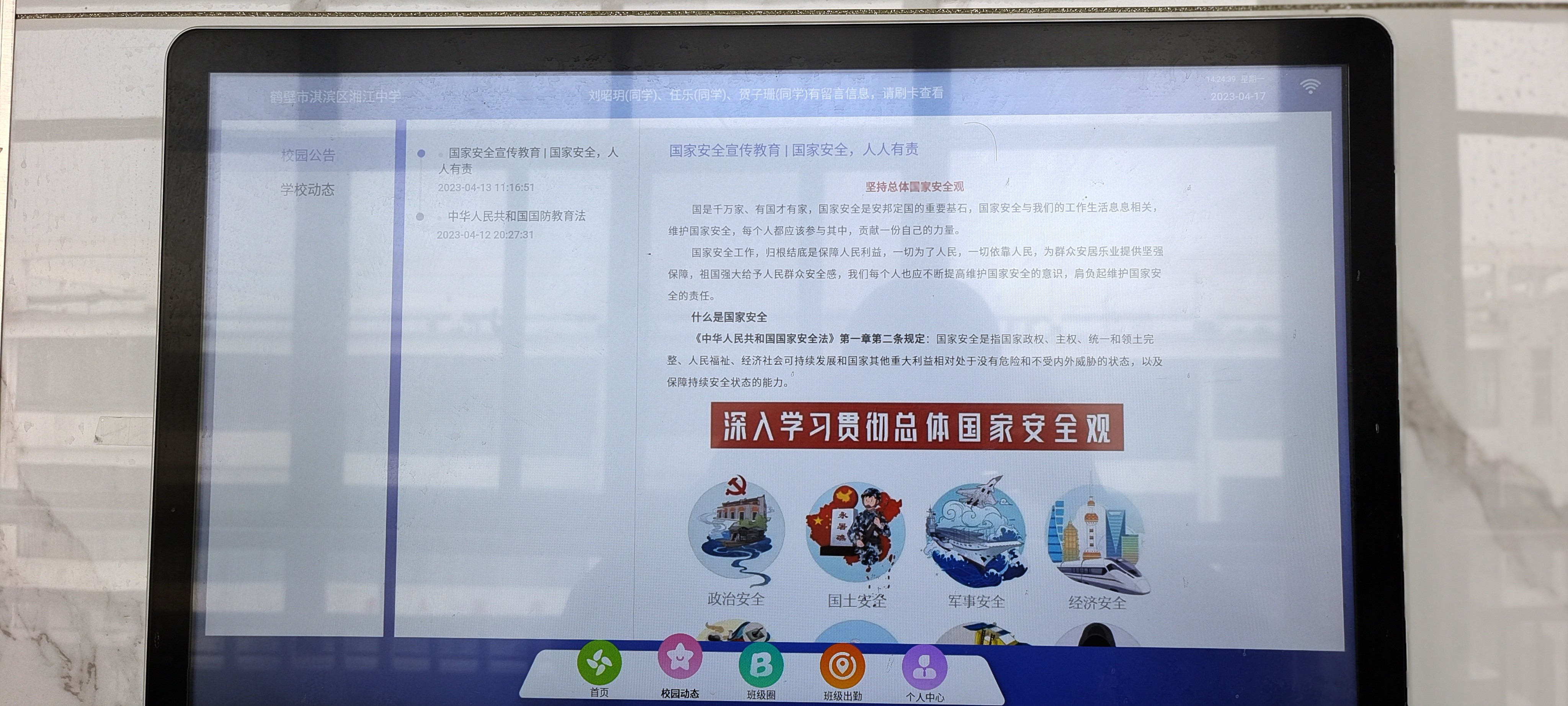 2.安全教育的日常性渗透。中小学生的安全教育是学校教育的必修课。将安全教育常识渗透在日常教育工作之中,电子班牌也提供了一个新的路径。