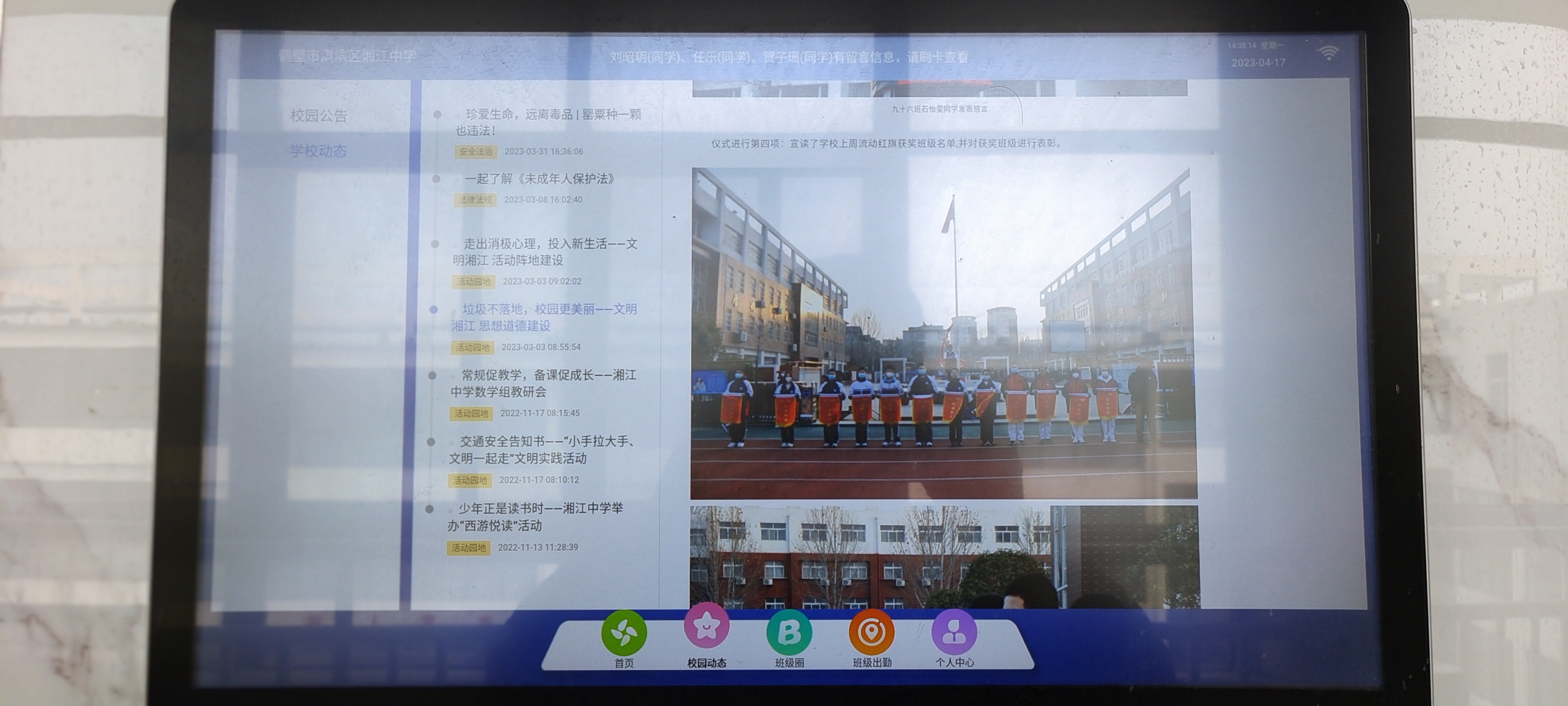 3.学校管理的多样化途径。学校可以将相关的通知直接发送至电子班牌上,也可以做不同的电子奖章,进行班级的表彰等等。学校教育管理的方式、方法得到了进一步的深化。