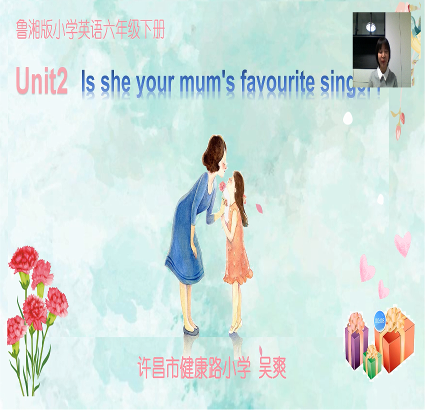 英语老师在讲解《Is she your mum’s favourite singer?》这一课中,使用信息技术手段录制了微课方便学生学习。